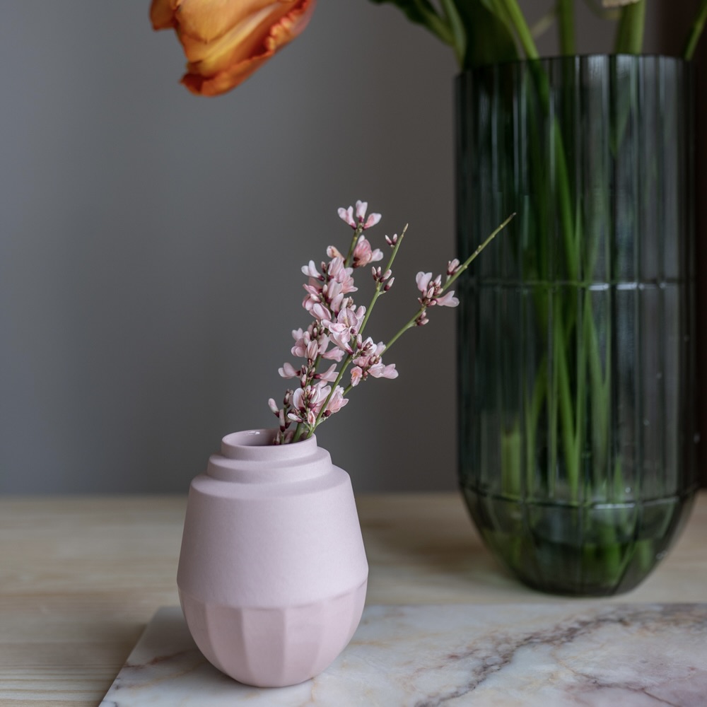 Creëer samen met onze urn Naos en vaasje Rana een mooie gedenkplek voor in huis. De vaasjes delen grotendeels dezelfde vorm als de urnen, met een ronde onderkant en verfijnde details die zich naar boven toe uitstrekken in een trapvorm. Ze heeft een glanzende onderkant en een matte bovenkant. Vaasje Rana Wordt met veel liefde en aandacht handgemaakt in onze atelier in Nijmegen.